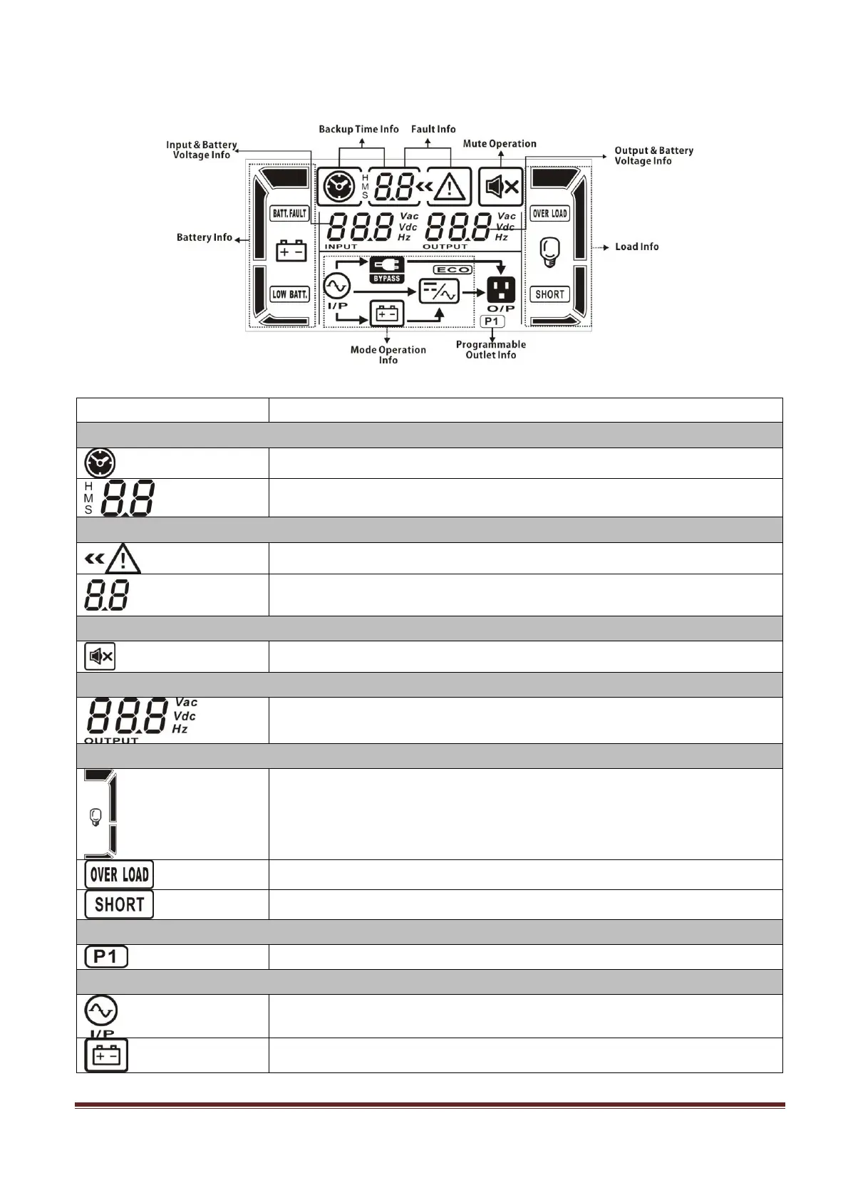 Vac: output voltage, Vdc: battery voltage, Hz: frequency