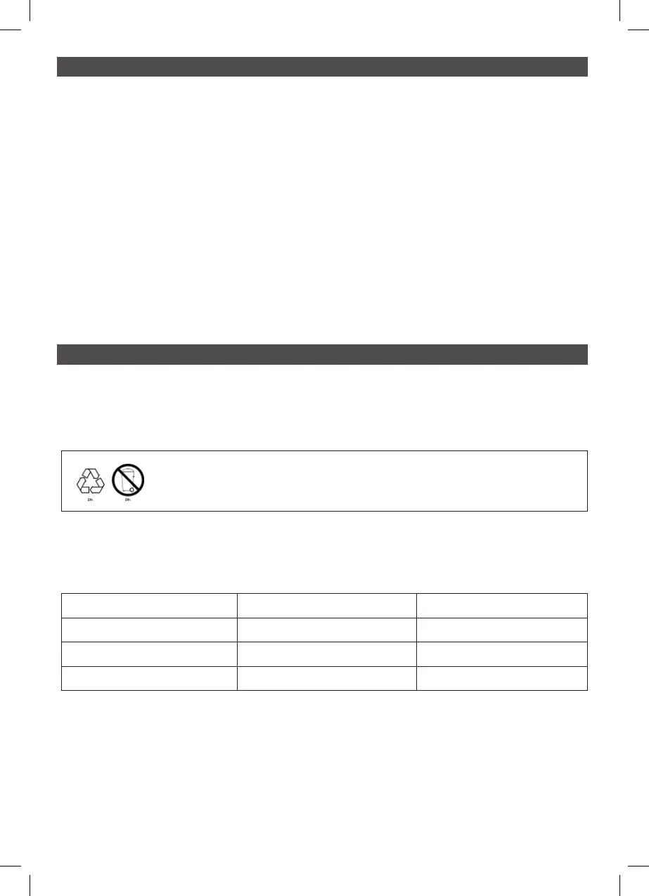 storage, recharge the battery in accordance with the following table: