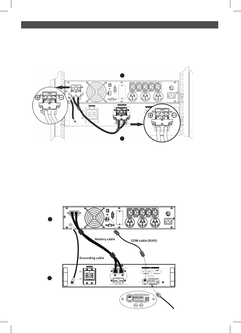 Step 1: Connect A UPS to B external battery module (PSLCERTBB50 with a battery cable.
