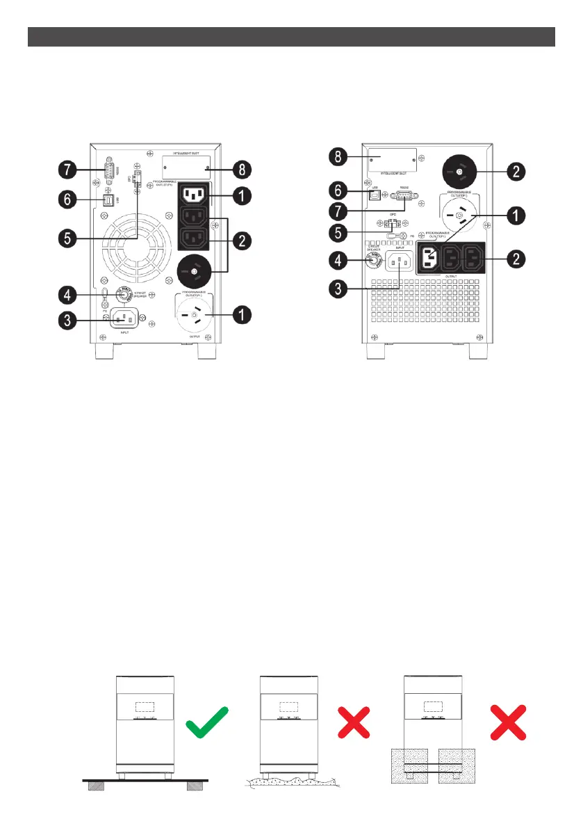 UPS should be placed on a flat, clean surface. Place it in an area away from vibration,