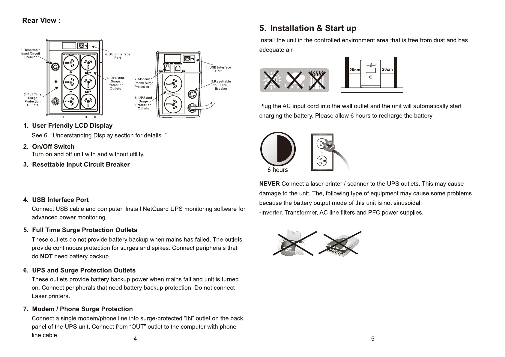 PowerShield Defender Series - UPS Rear Panel Connectivity; Installation & Start up; Unit Installation Requirements; Initial Setup and Charging