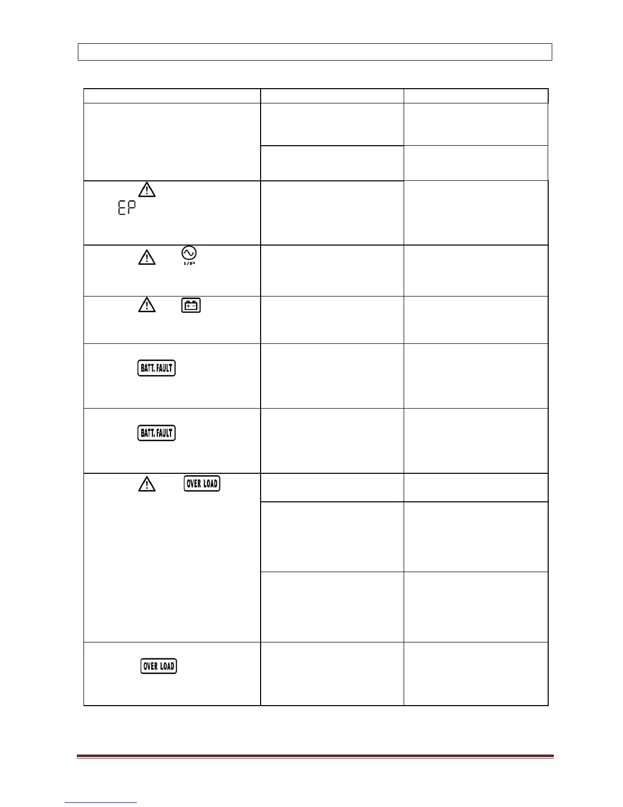 If the UPS system does not operate correctly, please solve the problem by using the table