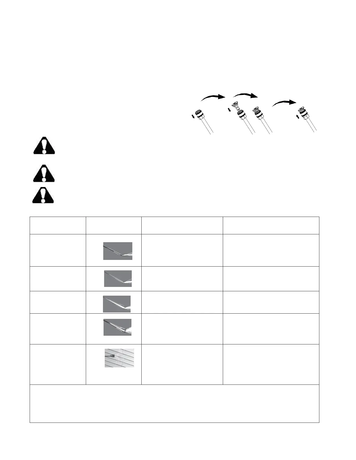 nozzles while pressure washer is running. Turn engine off before changing nozzles.