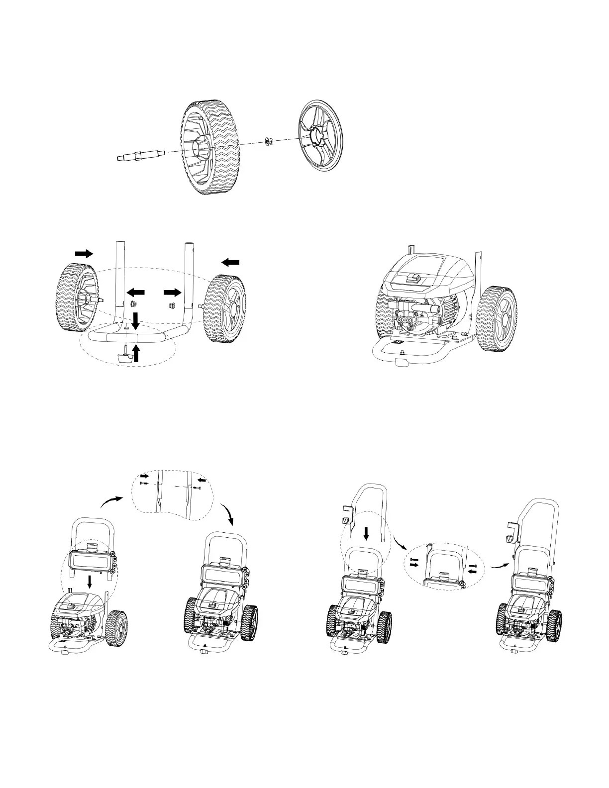 1. Pasar el eje de la rueda por la rueda. Luego instale la cubierta de la rueda sobre la rueda.