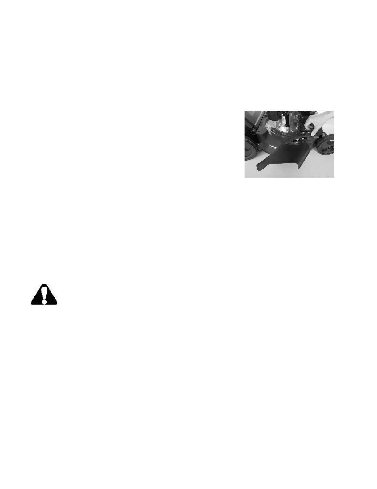 Caution: Do not remove side discharge cover at any time.