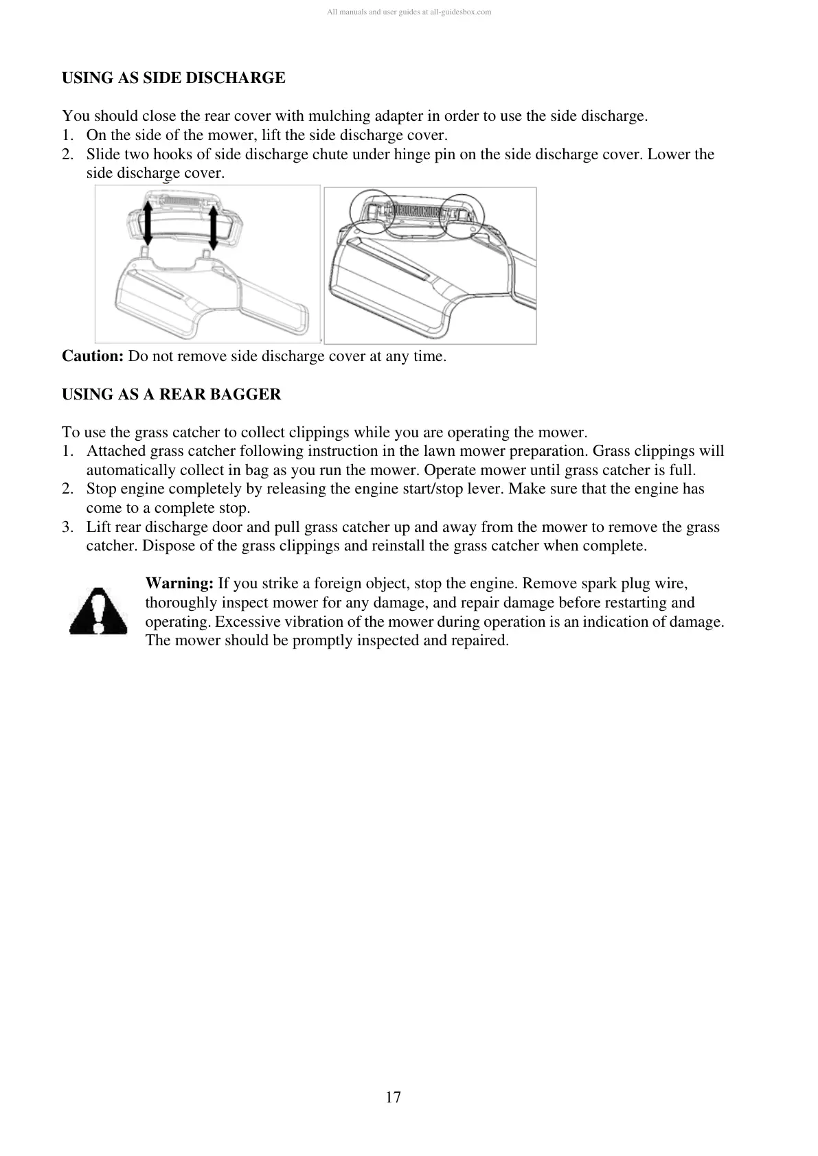 1. Attached grass catcher following instruction in the lawn mower preparation. Grass clippings will