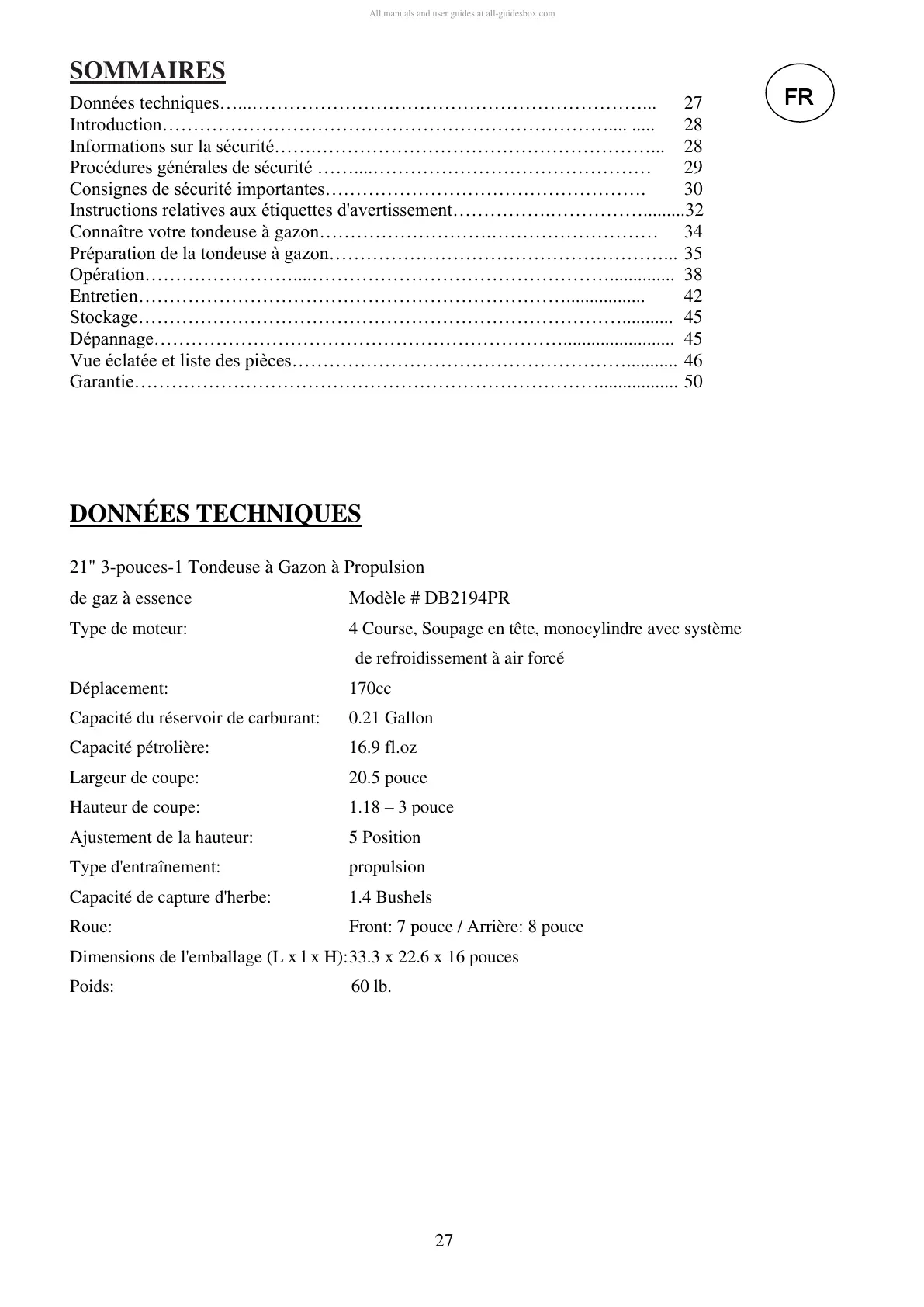 Connaître votre tondeuse à gazon……………………….……………………… 34
