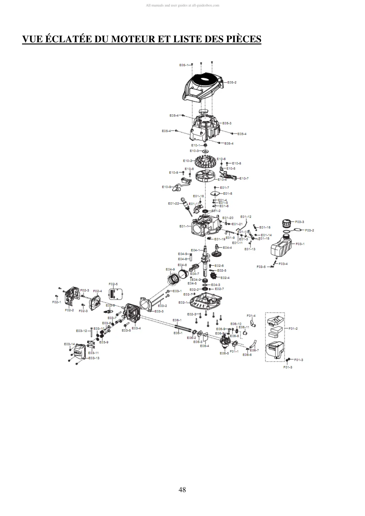 VUE ÉCLATÉE DU MOTEUR ET LISTE DES PCES
