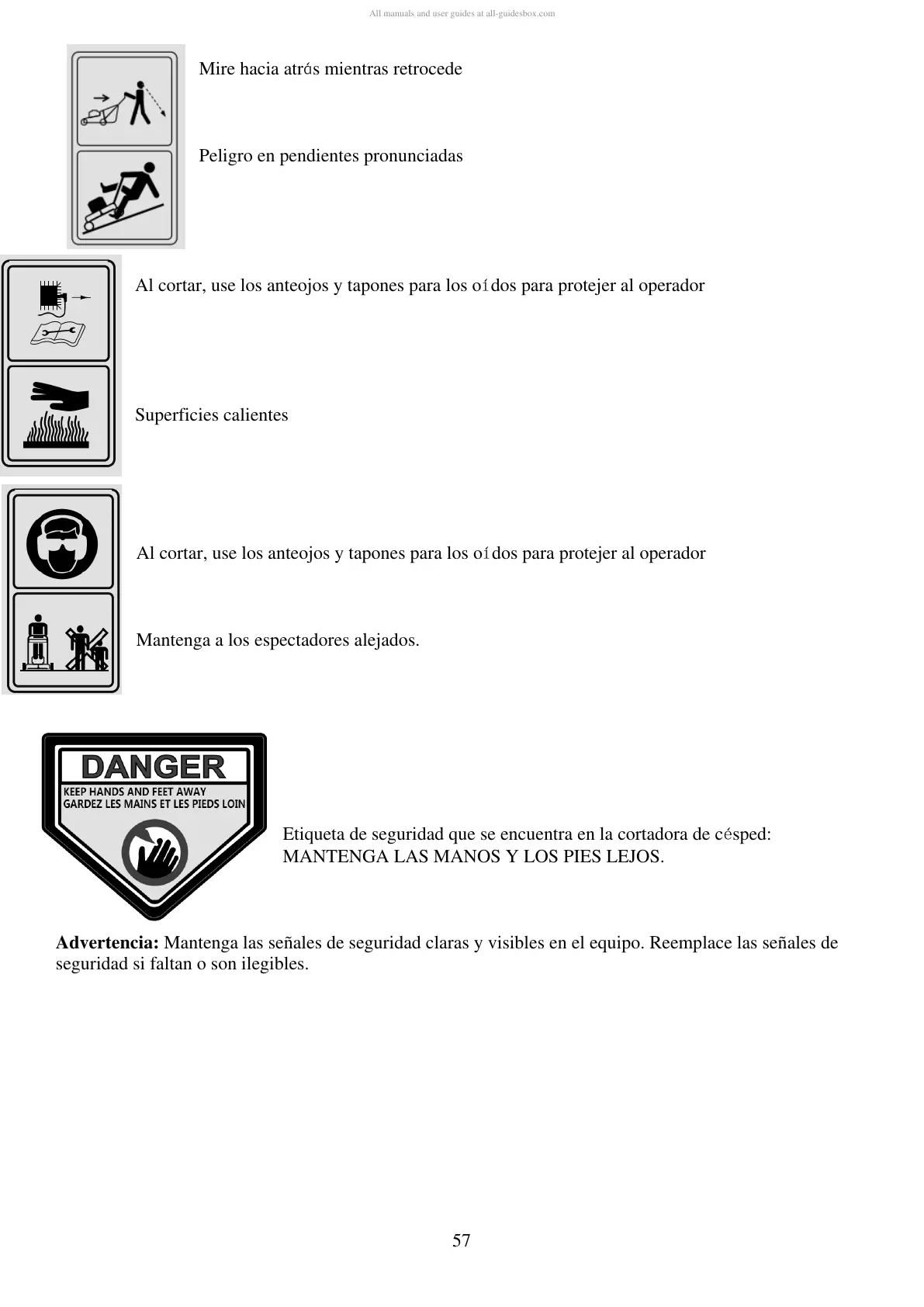 Etiqueta de seguridad que se encuentra en la cortadora de césped:
