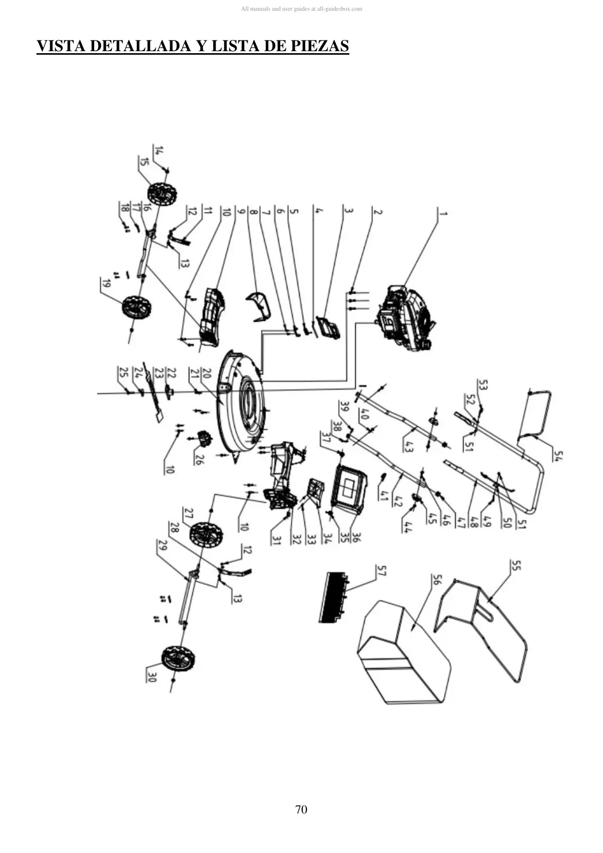 VISTA DETALLADA Y LISTA DE PIEZAS