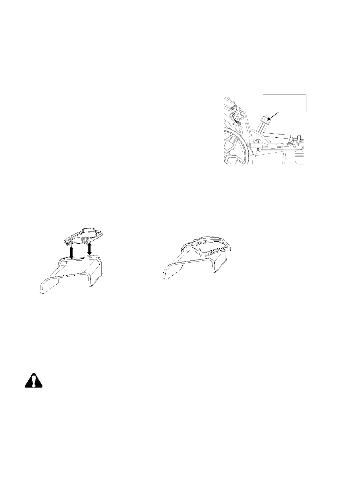 2. Slide two hooks of side discharge chute under hinge pin on the side discharge cover. Lower the side
