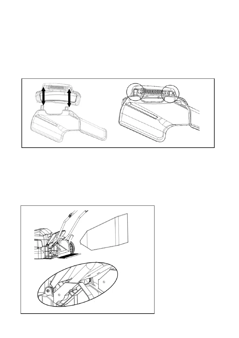 2.Slide two hooks of the side discharge chute under the hinge pin and lower the spring on
