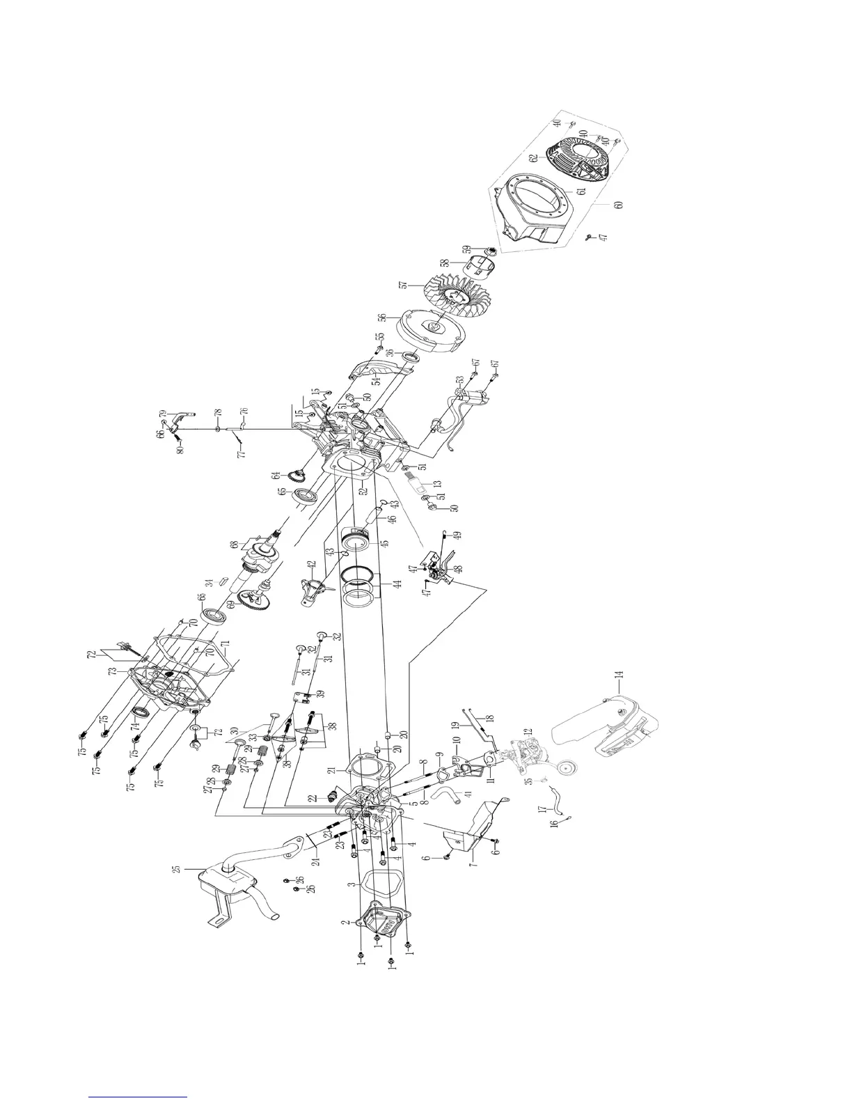 Engine exploded view and parts list