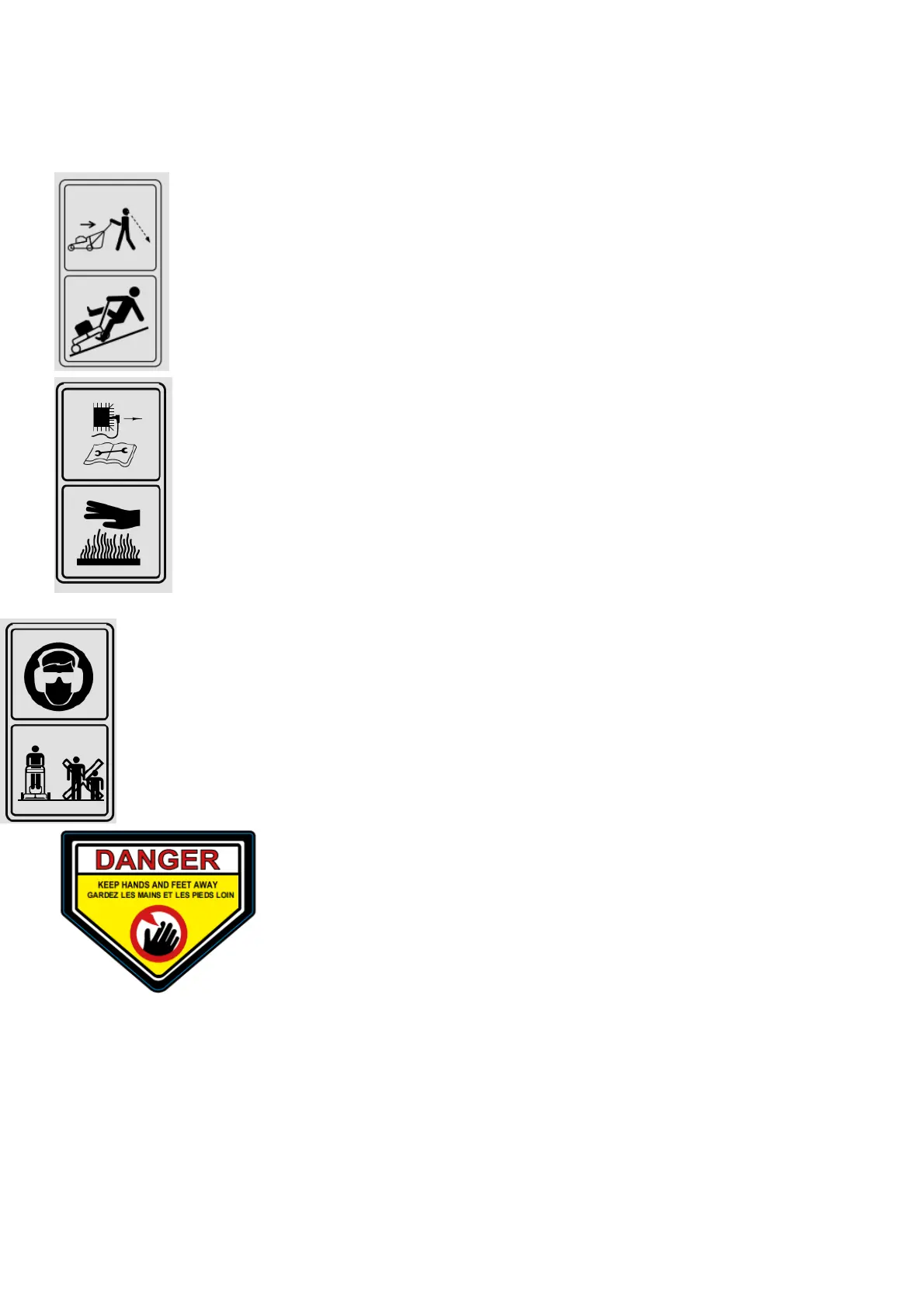 Avertissement: Gardez les panneaux de sécurité clairs et visibles sur l'équipement. Remplacez les panneaux de