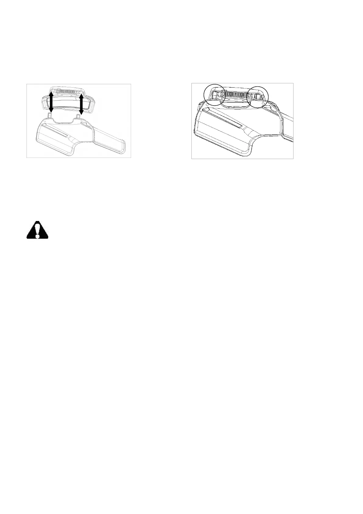 Caution: Do not attempt to remove the permanently mounted spring loaded side discharge cover at any