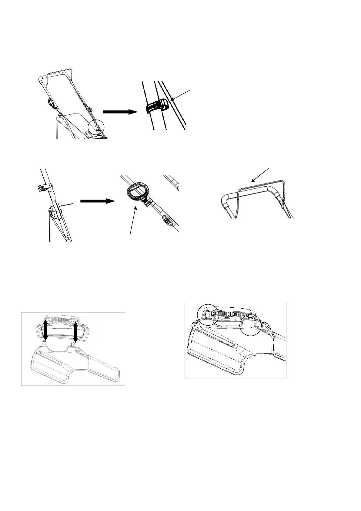 4. Insert the recoil starter handle cable into the hook provided on the upper handle. You must engage the start/stop