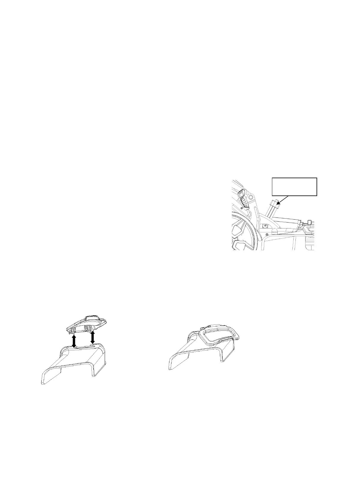 2. Slide two hooks of side discharge chute under hinge pin on the side discharge cover. Lower the side