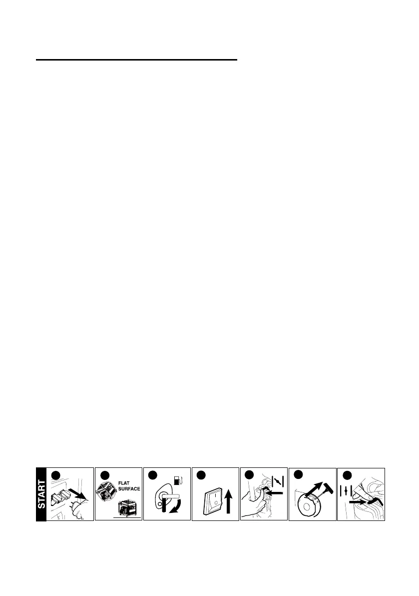 1/2CHOKE position until engine runs smoothly, then to RUN position.