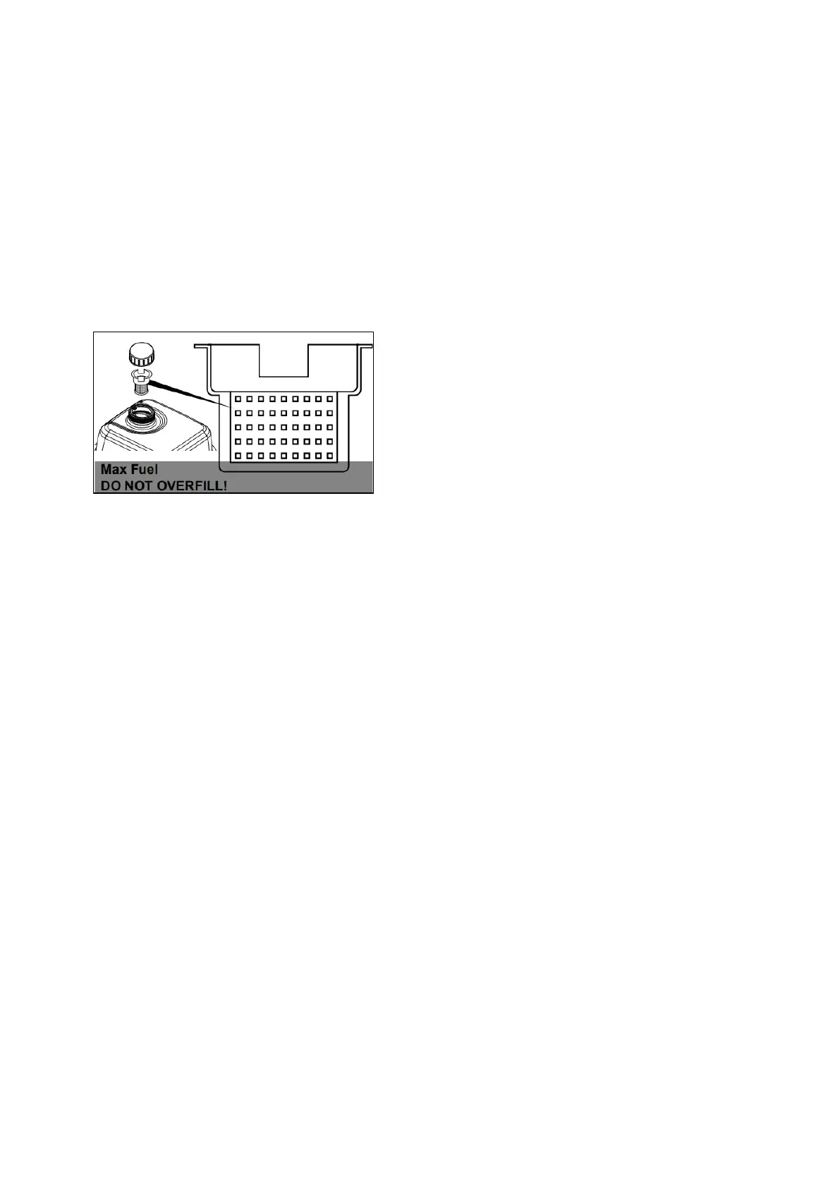 Do not fill fuel tank to the top. Leave a little room for the fuel to expand as needed.