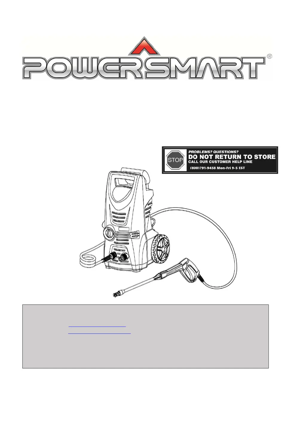 If your Powersmart Pressure Washer isn't running, check these potential causes: * Ensure the machine is properly plugged into a working socket. * Try a different socket and/or extension cable to rule out defects. * Verify that you're using the correct mains voltage. * Make sure the switch is turned on. * Check and replace the fuse if it has blown.