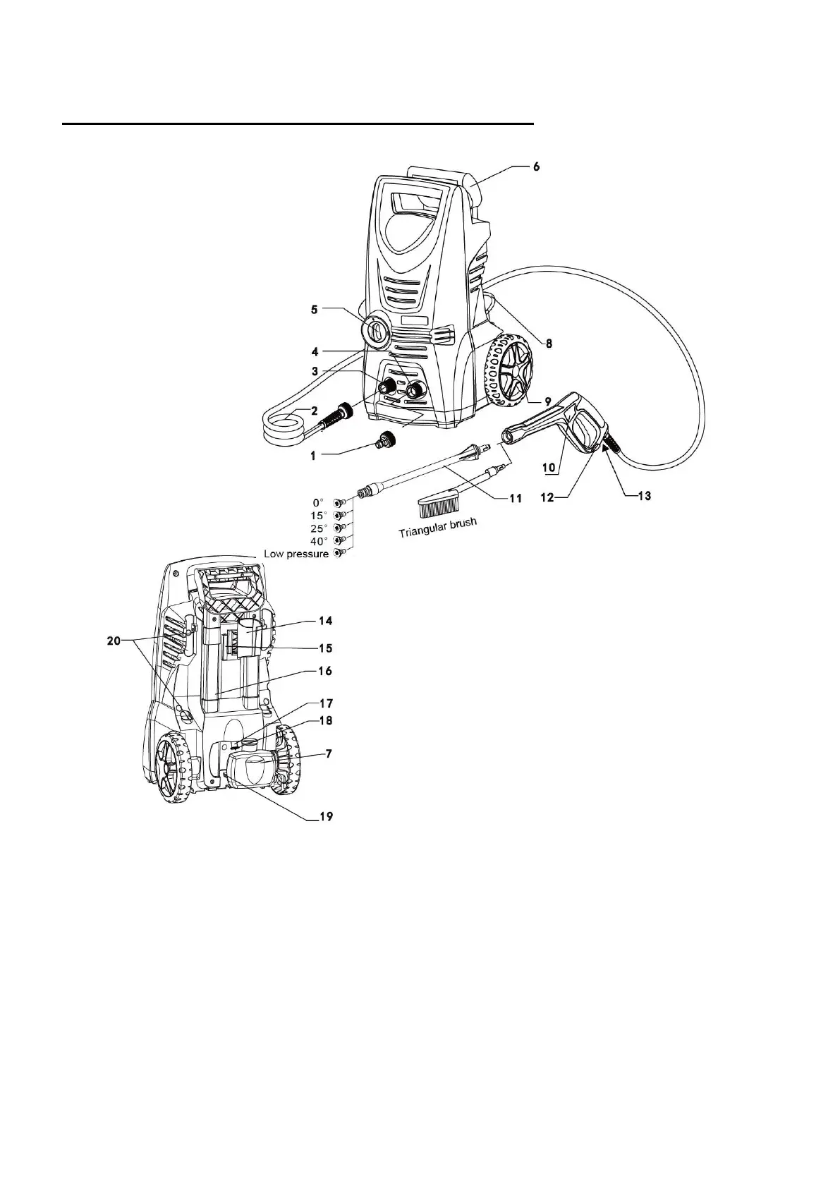 Including: High pressure washer/ Trigger gun / High pressure hose/ Water supply connector / Spray lance