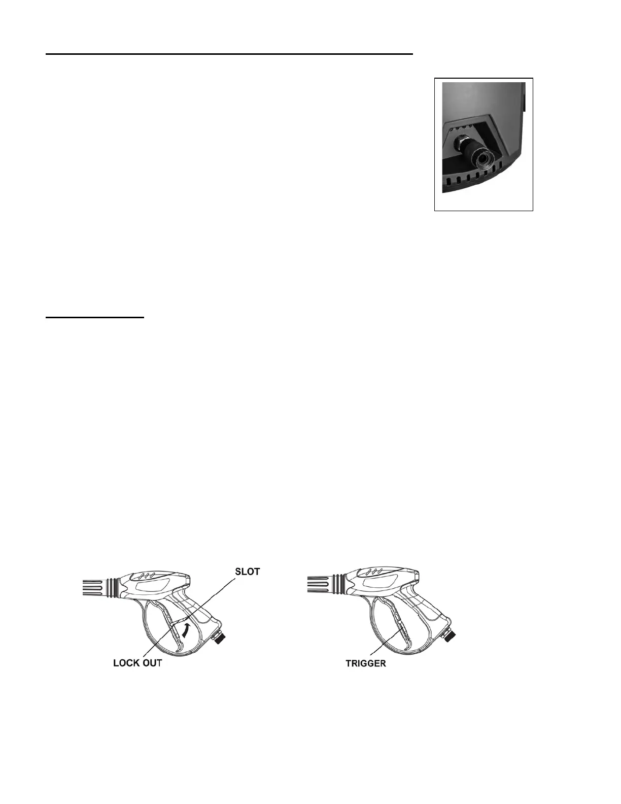 the trigger to begin operating pressure washer. To stop water flow, release trigger.