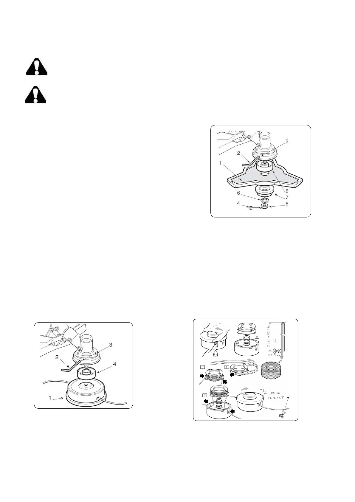 3. Fit the cutting line head (1) screwing it up in an anticlockwise direction.