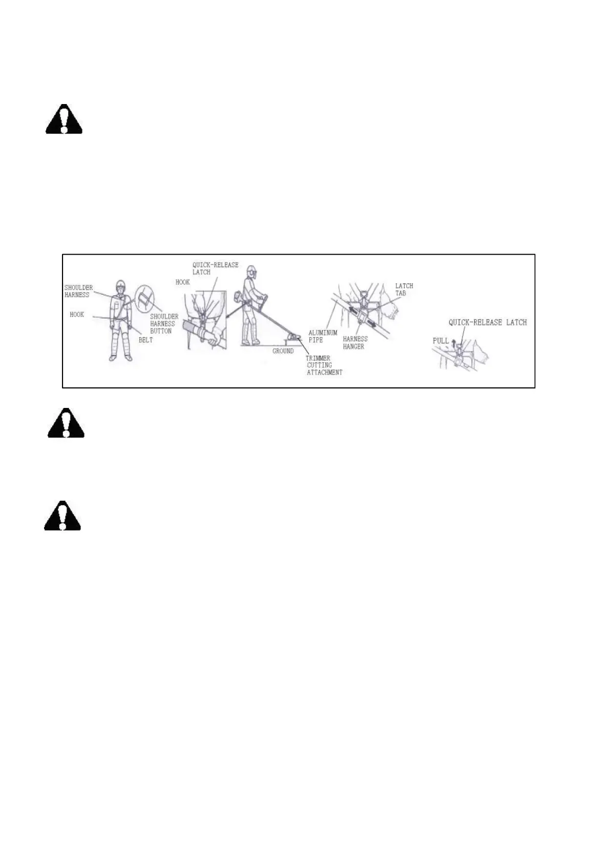 danger,please stop the brush cutter immediately,and pull the quick-release latch tab,the brush