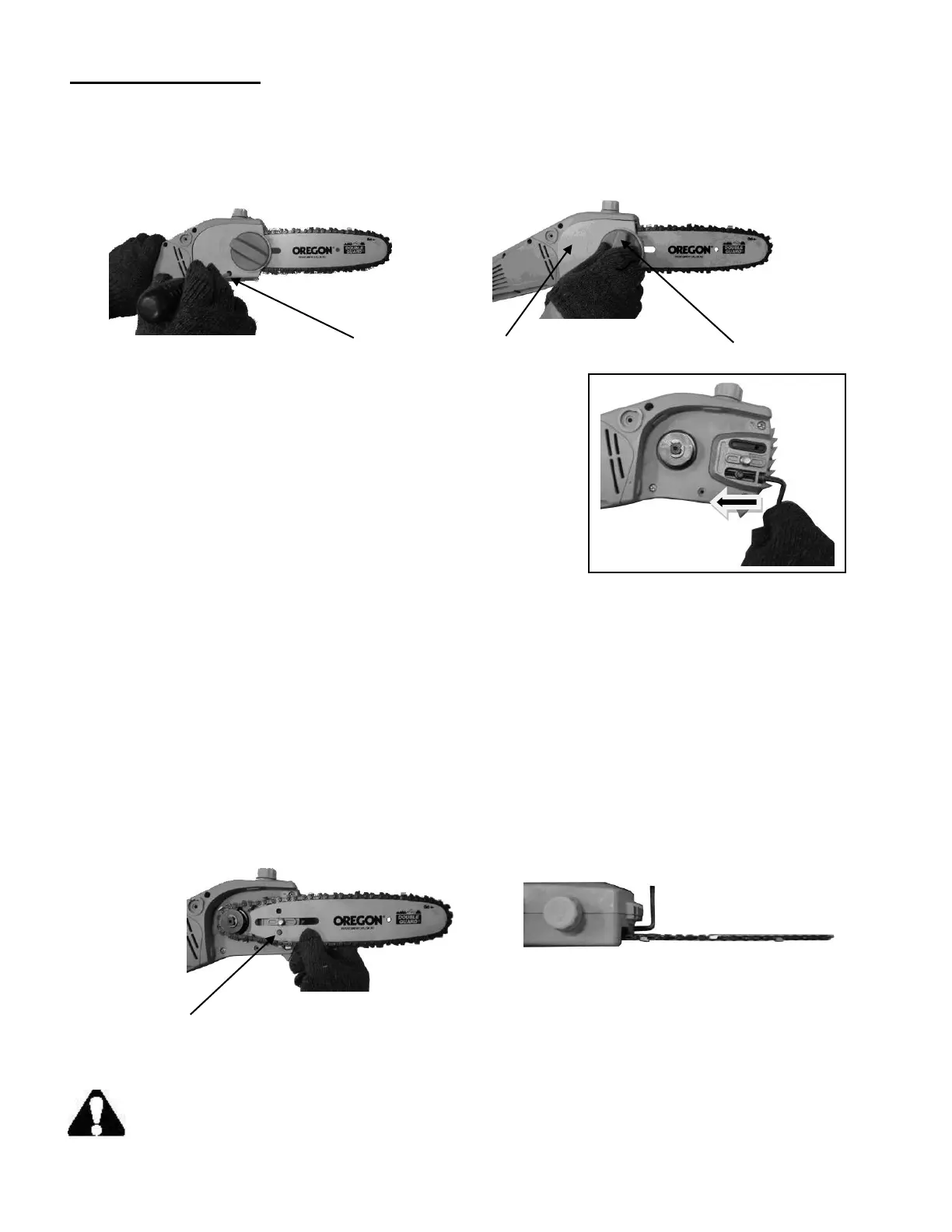 using the chain tension screw. (See direction arrow)