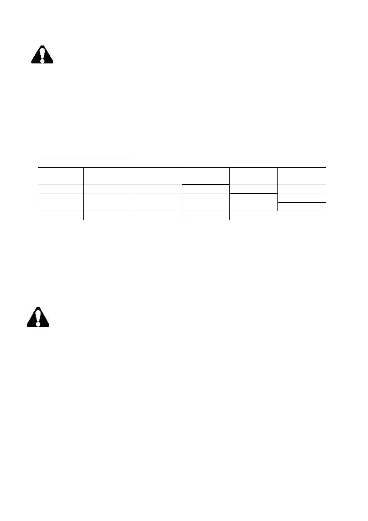 voltage resulting in loss of power and overheating. The table below shows the correct size to be used