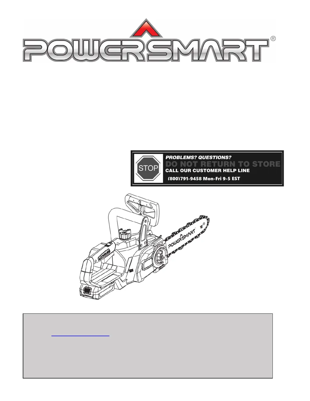 The motor of your Powersmart Chainsaw might not be running due to several reasons: the battery pack may not be attached, so ensure it is securely connected. There might be no electrical contact between the saw and battery; in this case, remove the battery, check the contacts, and reinstall it. The battery pack could be depleted, requiring a charge. Overheating of the battery pack or chainsaw can also prevent operation, so allow them to cool. Make sure the lock-off button is depressed before pressing the trigger switch. Check if the chain brake is engaged and pull the chain kickback brake handle backward. If the saw chain is bound in the wood, release the trigger switch and remove the saw chain. Clear any debris from the bar groove or inside the cover to ensure smooth operation.