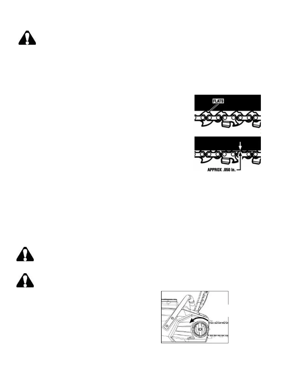 4. Chain must be re-tensioned whenever the flats on the drive links hang
