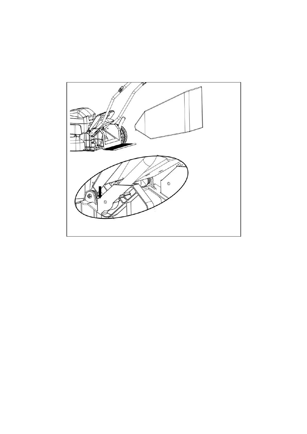 • Libérez le couvercle de la goulotte. Lorsque les crochets du sac à herbe sont installés