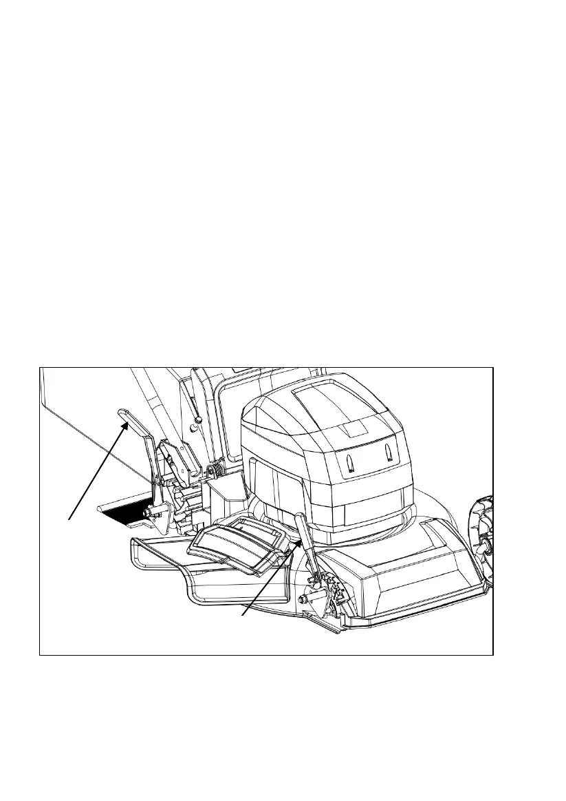 • To lower the blade height, grasp the height adjustment lever (1) and Rear height