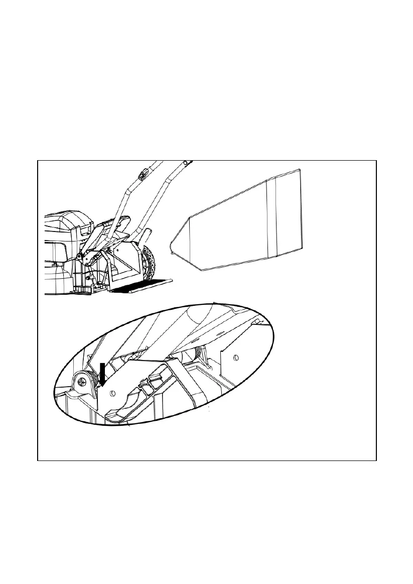 • Libérez le couvercle de la goulotte. Lorsque les crochets du sac à herbe sont installés