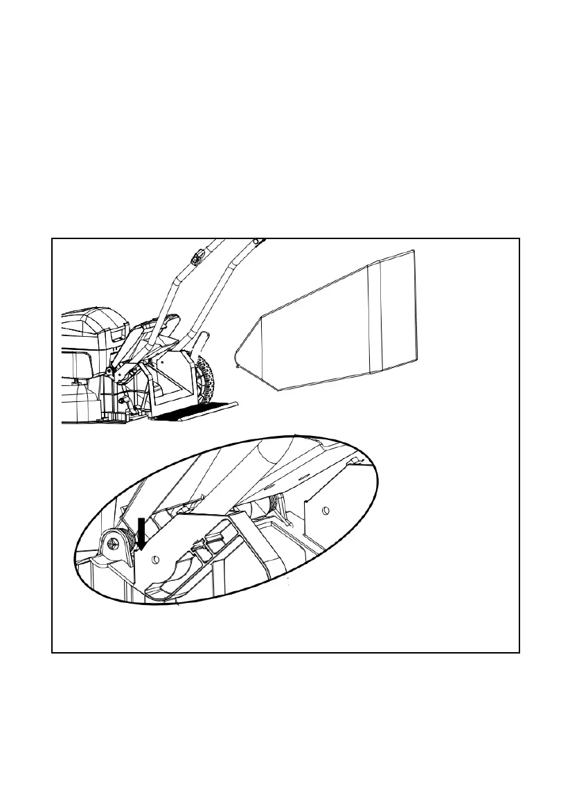 • Levante el recogedor de hierba por su manija (2) y colóquelo debajo de la cubierta