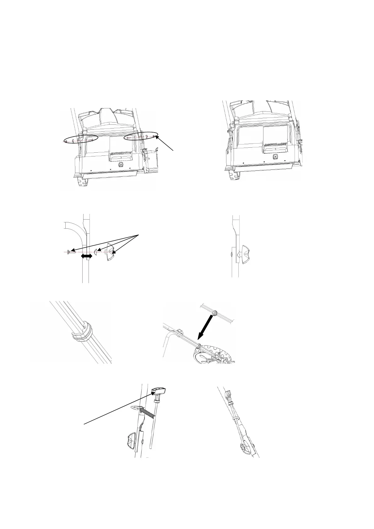 4. Inserte el cable de la manija de arranque de retroceso en el gancho provisto en la manija superior.