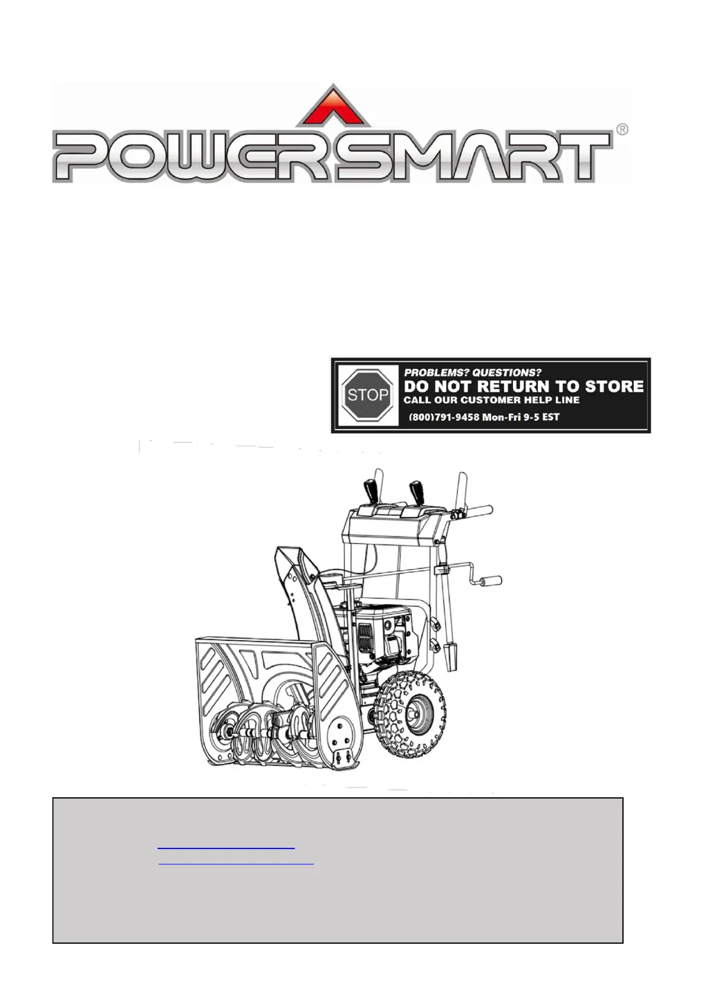 If the electric starter on your Powersmart Snow Blower won't crank the engine, begin by verifying that the power supply is working and that the extension cord is properly connected. A tripped breaker could be the cause. Also, ensure that you are using an extension cord with the correct rating and length. Finally, make sure the CHOKE lever is in the RUN position, not ON or partially ON.