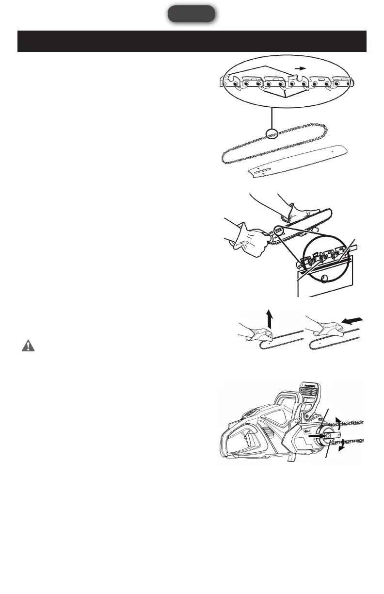 • Remove all slack from the chain by turning the chain