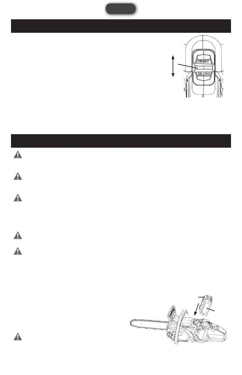 La tronçonneuse a deux vitesses de fonctionnement. Pour sélectionner