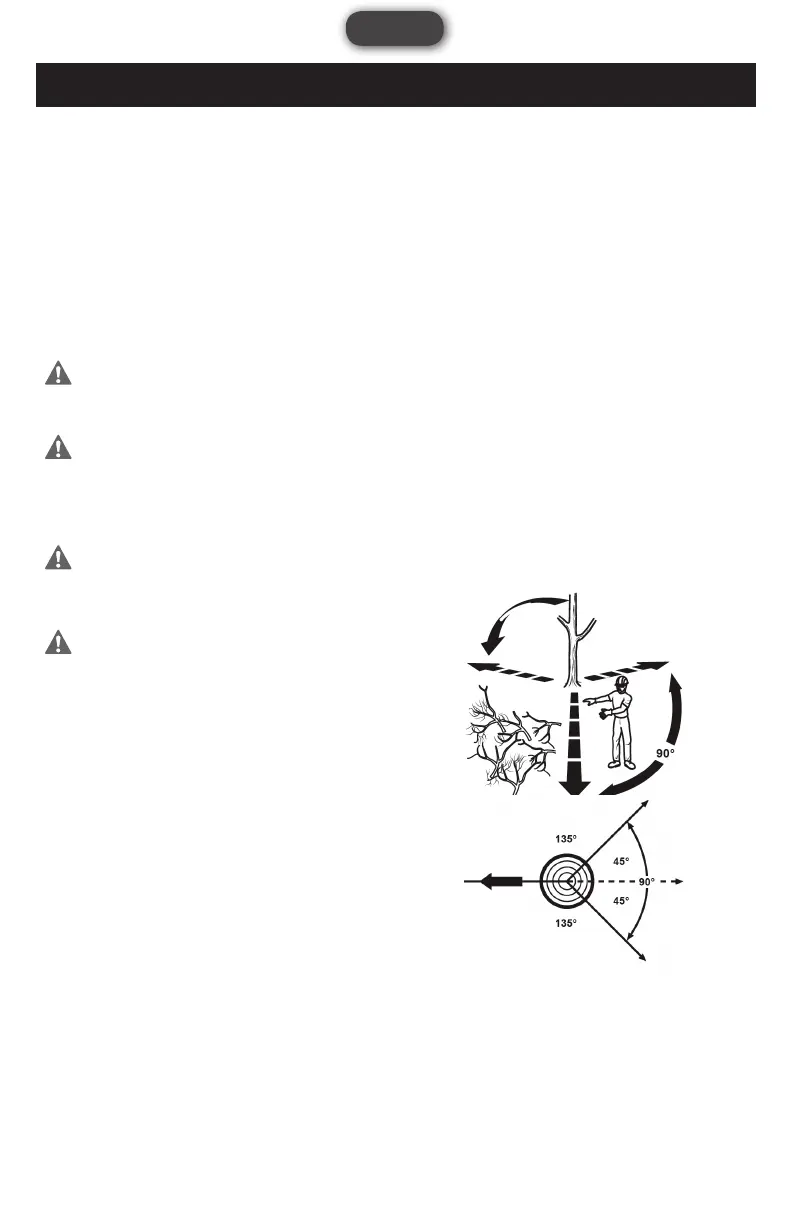 • Si l'arbre commence à tomber dans la mauvaise direction, ou si la scie se coince ou s'accroche pendant la chute,