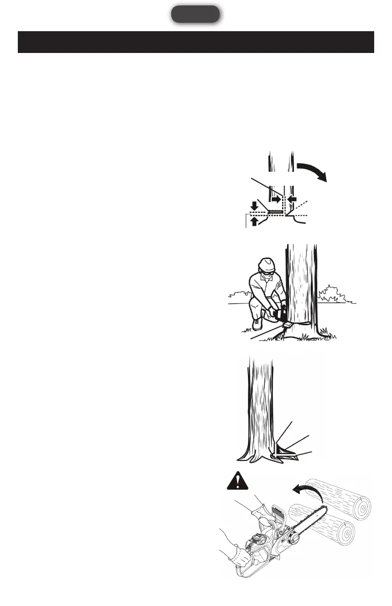 • Lorsque l'arbre commence à tomber, arrêtez la tronçonneuse