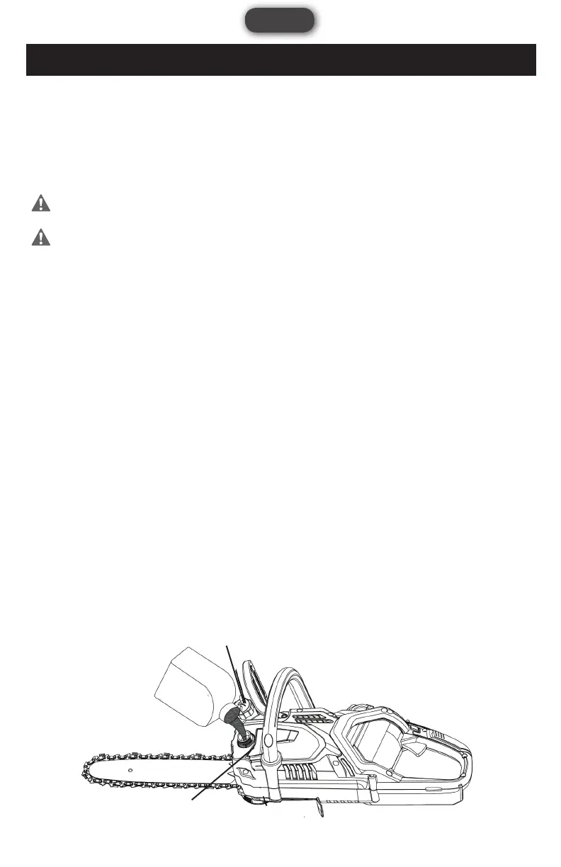 antes del uso. El funcionamiento de la motosierra sin aceite para cadenas o cuando el nivel de aceite está por debajo