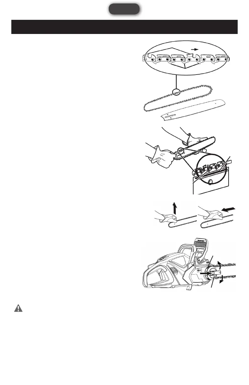 Coloque la nueva cadena de la sierra en un lazo y enderece