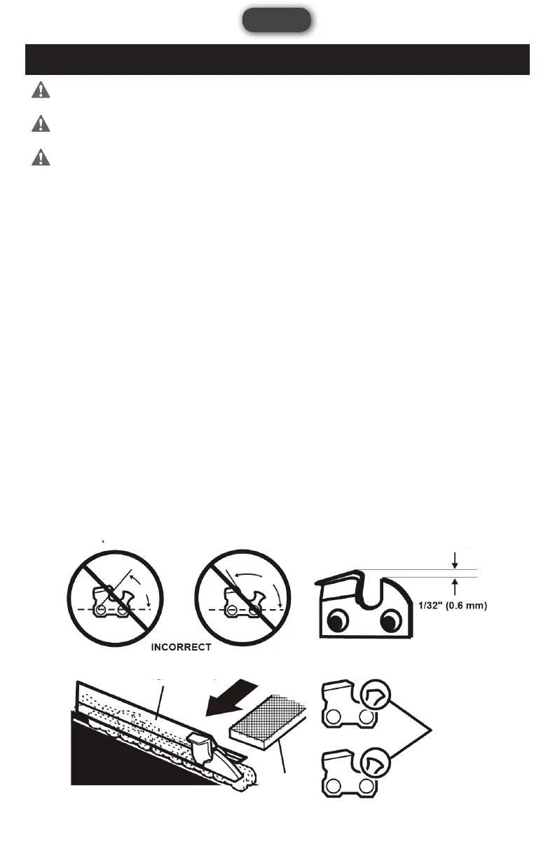 • Cada vez que se lime la cadena, verifique la holgura del calibre de profundidad.