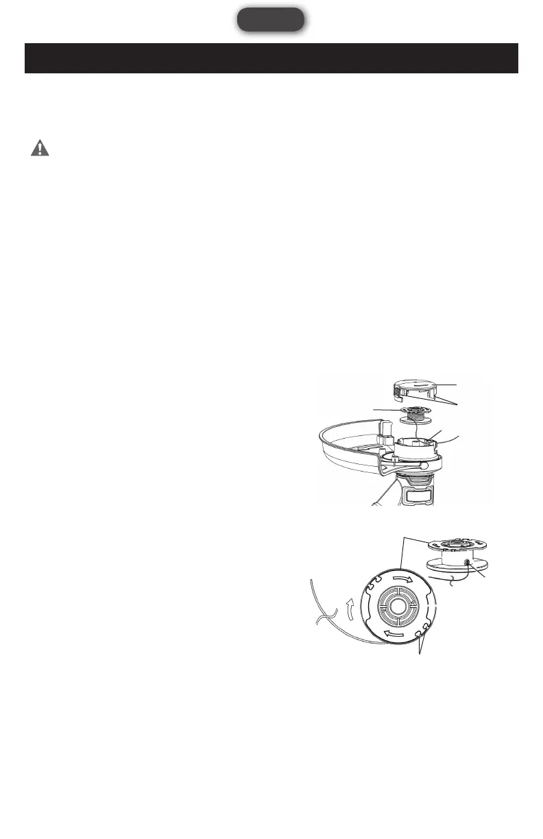 • Deje aproximadamente 4" de la línea desenrollada y asegure la línea usando las ranuras.