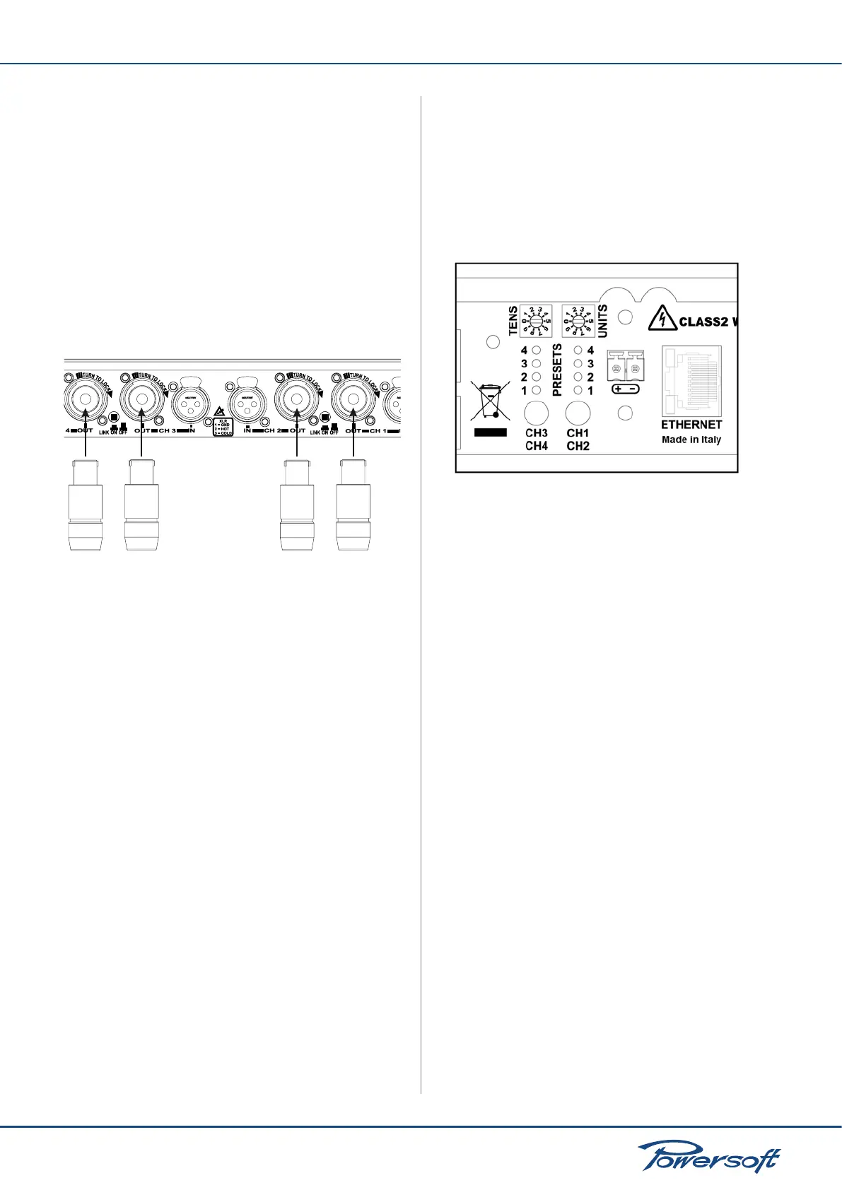 All output connections are made via Speakon connectors. The