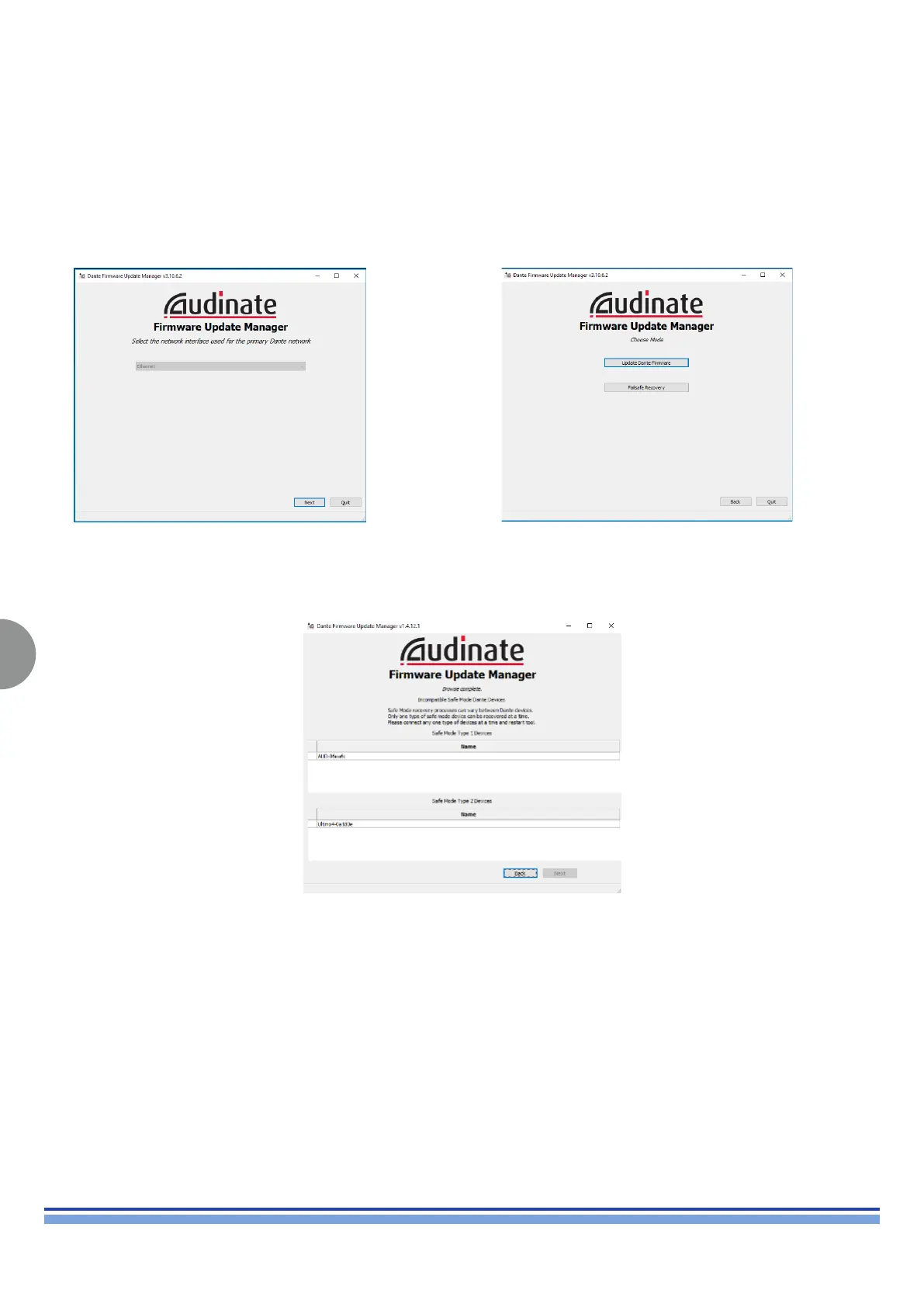 To recover Dante devices in safe mode: