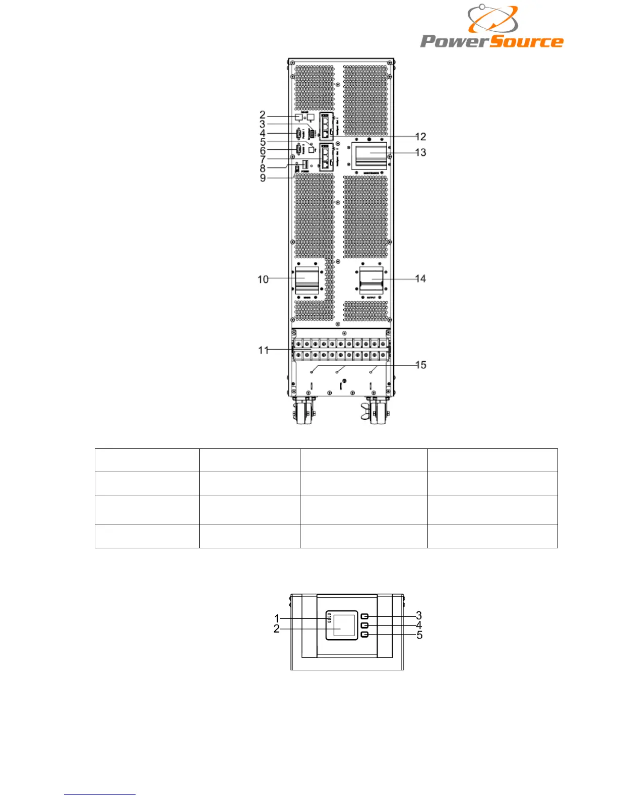 1LEDfrom top to bottom: “alarm”, “bypass”, “battery”, “inverter” 2LCD display3