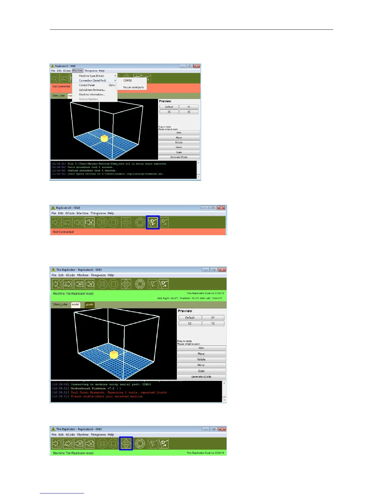 Now we can link the machine to the computer. Click on the printer connect icon highlighted in blue :